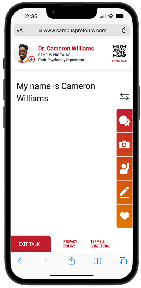Features Available for Campus Pro Tours and Campus Pro Talks